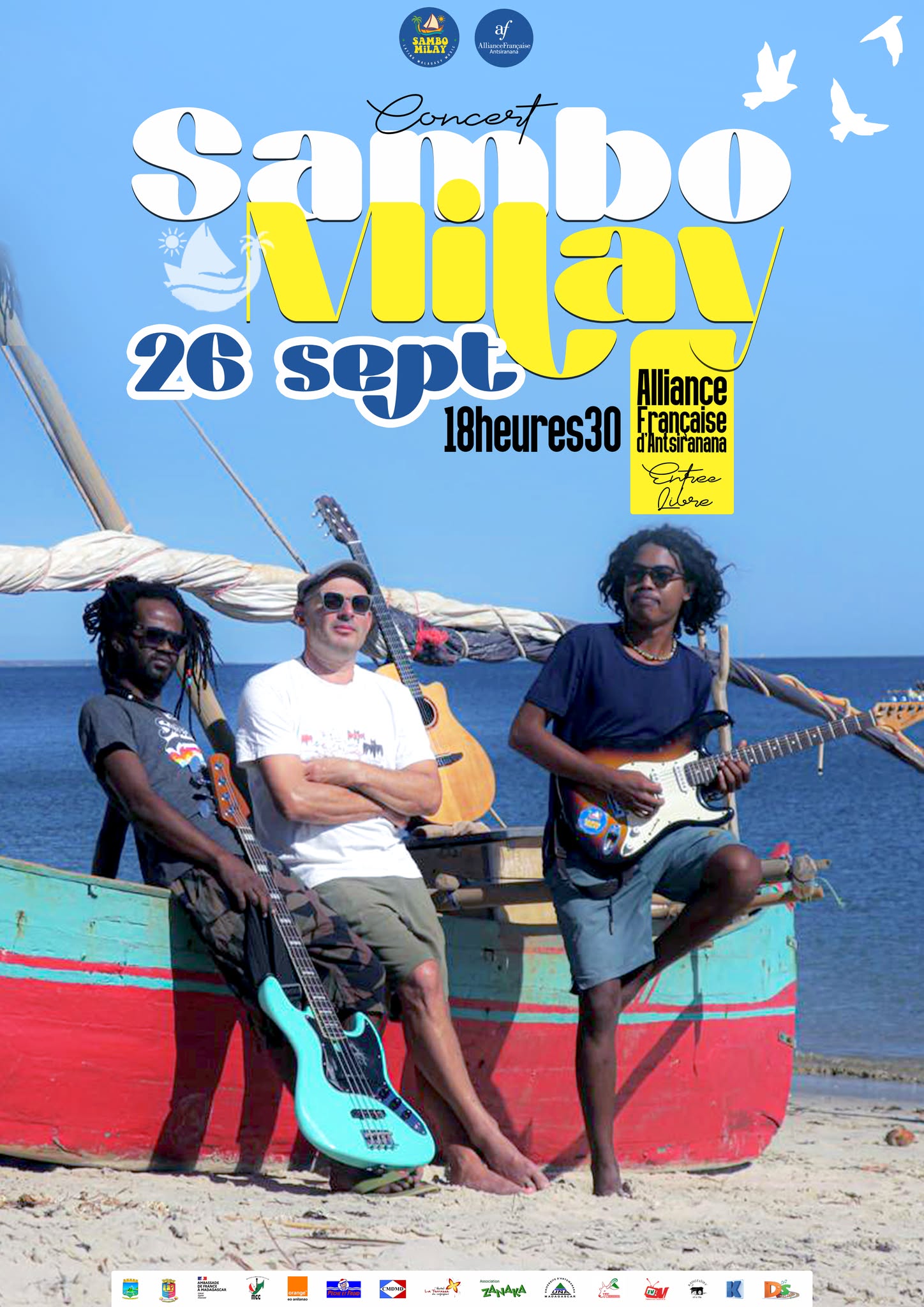 Au plaisir d’accueillir 𝐒𝐀𝐌𝐁𝐎 𝐌𝐈𝐋𝐀𝐘 qui vient de Mahajanga du 𝟐𝟔 𝐚𝐮 𝟐𝟕 𝐬𝐞𝐩𝐭𝐞𝐦𝐛𝐫𝐞 à l’ Alliance française Diego Suarez .